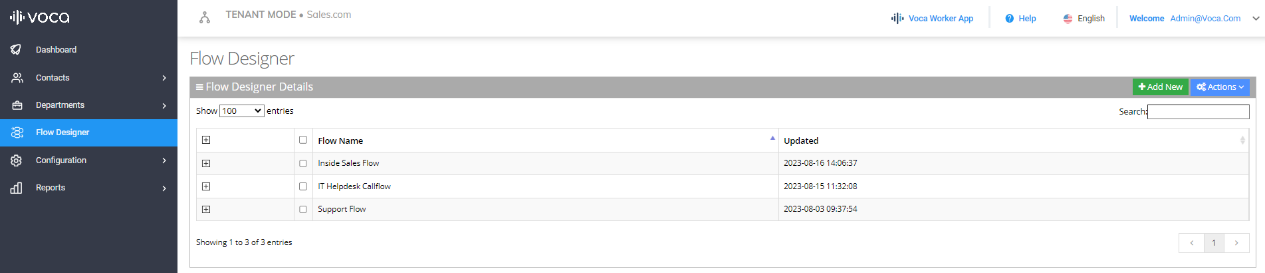 From the Navigation pane, click Flow Designer; the Flow Designer page opens: |