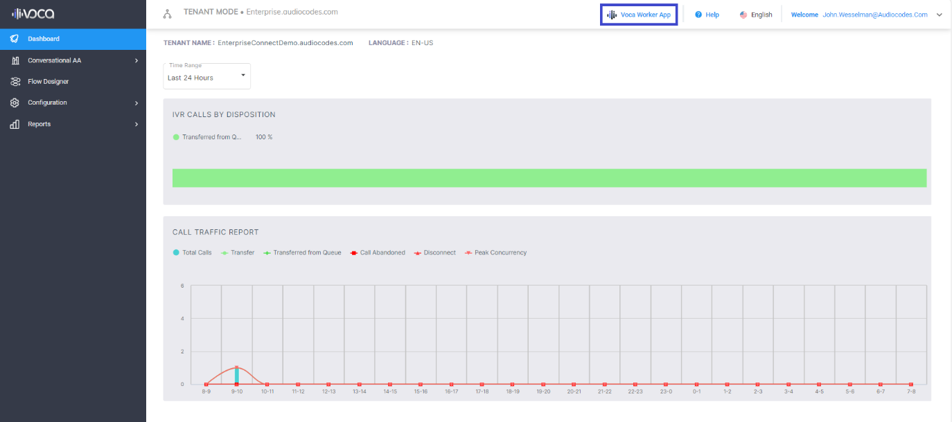 1. | From the Navigation menu pane, select Dashboard, and then on the top bar, click the Voca Worker Application button: |