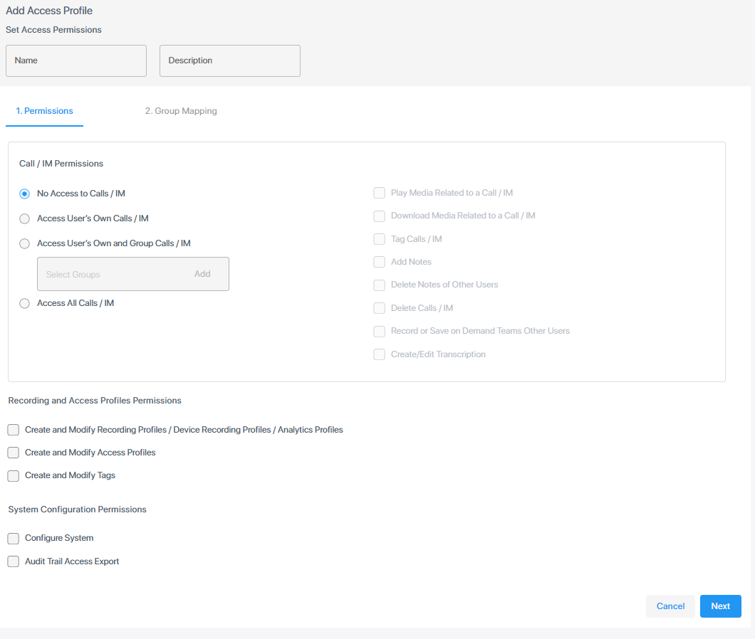 Recording and Access Profiles permissions