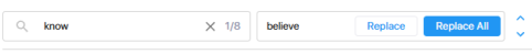 Enter the replace text and click Replace to replace the current occurrence of the search text, or Replace All to replace all occurrences. |