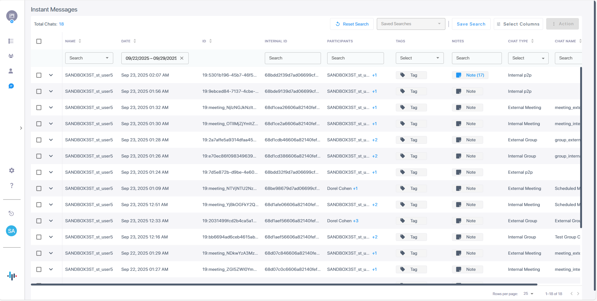 The recording of Instant Messages in Microsoft Teams for call participants is supported in this release. The feature is enabled in the service Onboarding form including the number of users whose messages you wish to retrieve. A new page has been added to the Service portal.