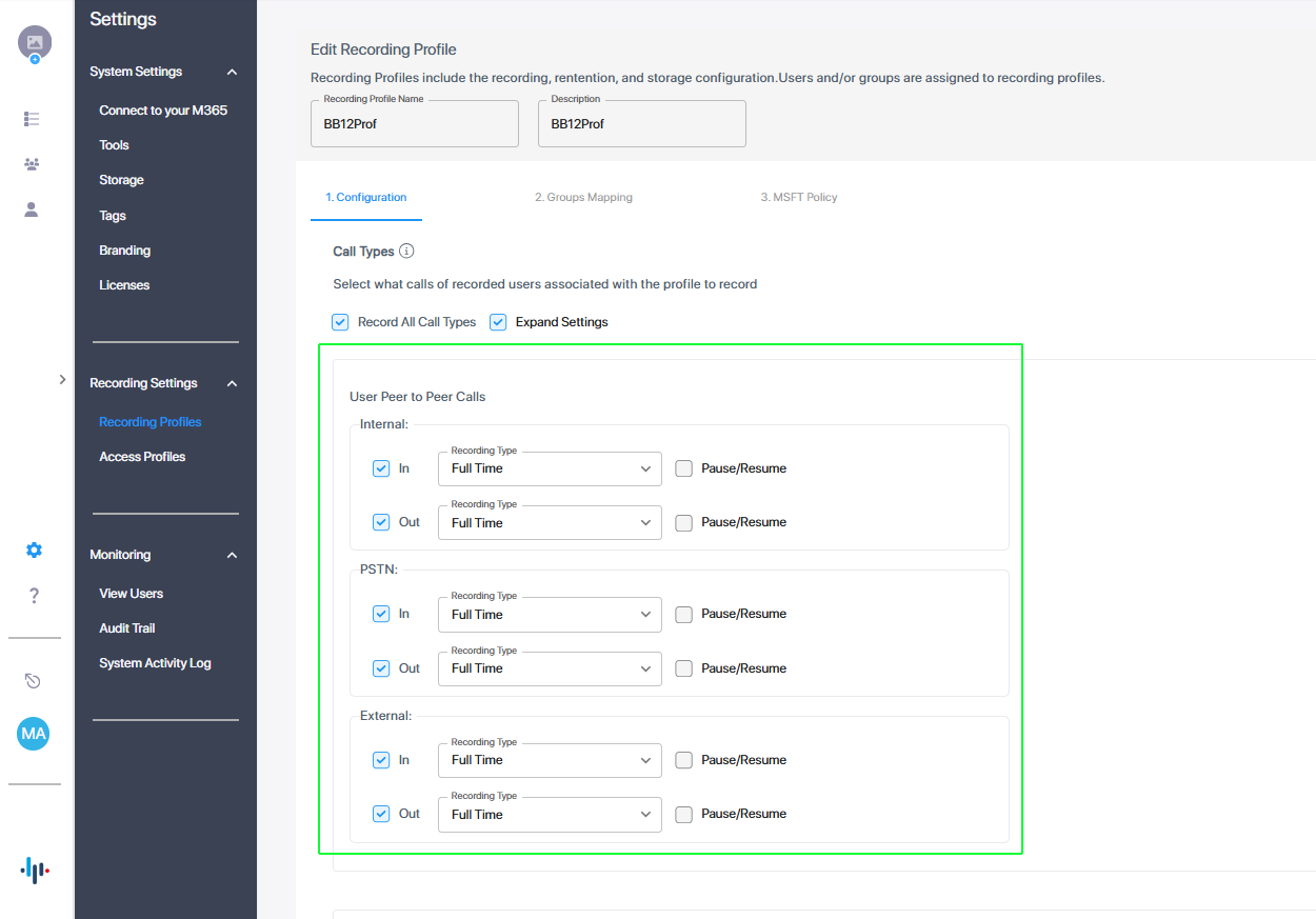 Support for pausing and resuming a call recording in the Recording profile. This feature must be configured by the Service Provider at the Service level in the Advanced Features page in the Tenant Management interface.