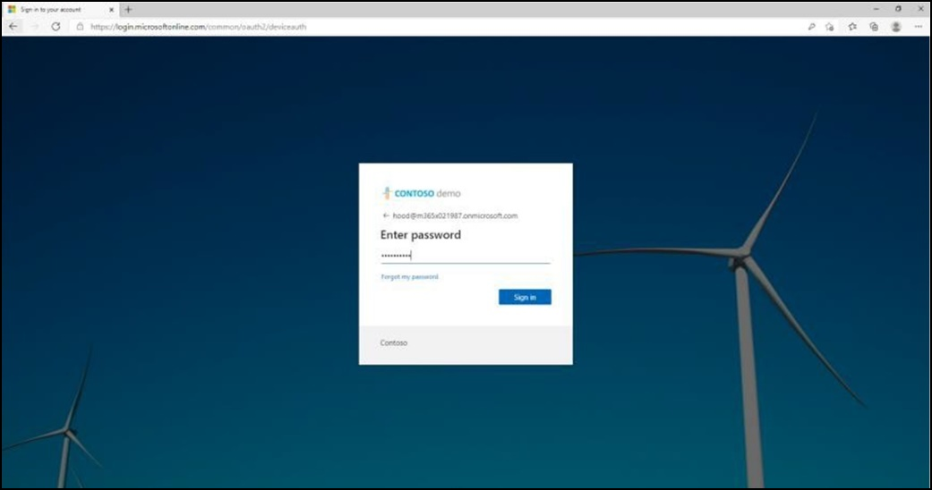 The technician is then expected to enter the device-specific Verification code that was provided in the Teams admin center on the phone’s user interface. Once the device is provisioned successfully, the tenant name will be available on the sign in page.