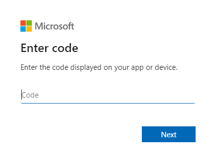 Open your browser and point it to https://microsoft.com/devicelogin as instructed in the preceding screen. |