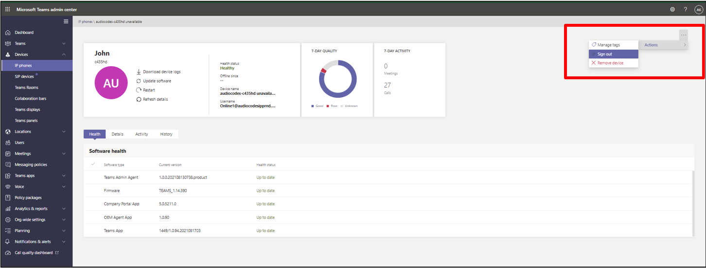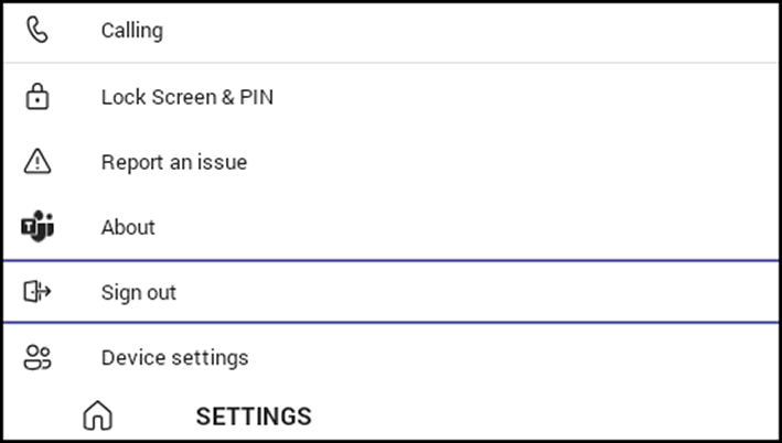 Network administrators can alternatively sign out from devices using Microsoft Teams admin center (TAC). Network administrators can also remotely sign in and provision devices from Microsoft's TAC.