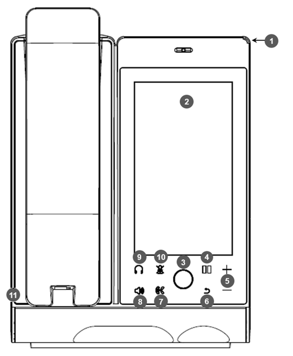Increases or decreases the volume of the handset, headset, speaker, ring tone or call progress tones. See Adjusting Volume for detailed information.