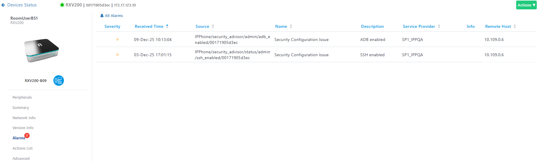Open the Devices Status page (Monitor > Dashboard > Devices Status) and search for the RXV200 device for which the RXV200-B09 is bundled. |