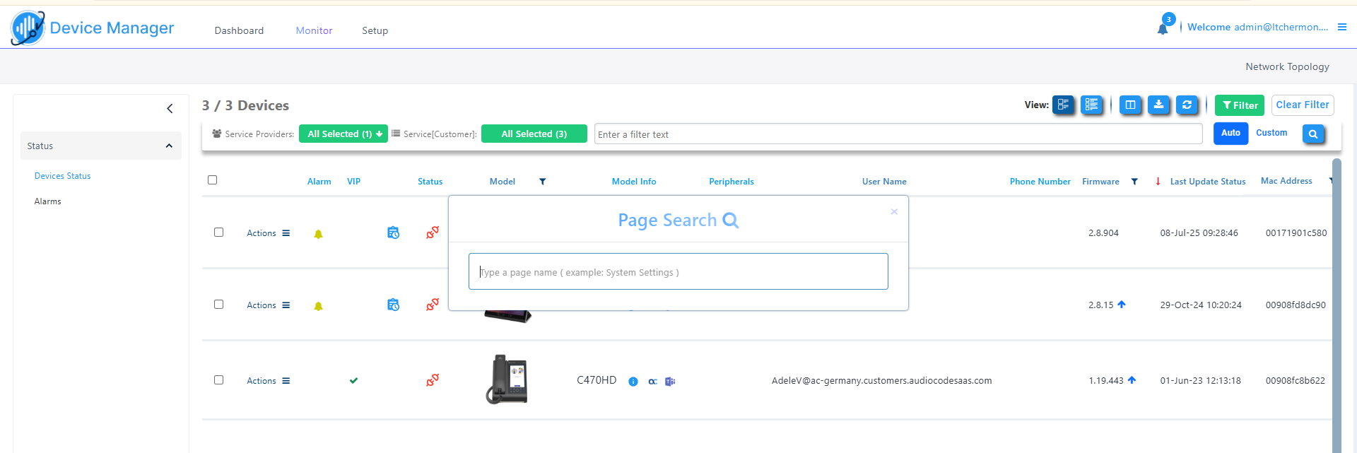 Users can quickly and effortlessly navigate from any page in Device Manager to any other page.
