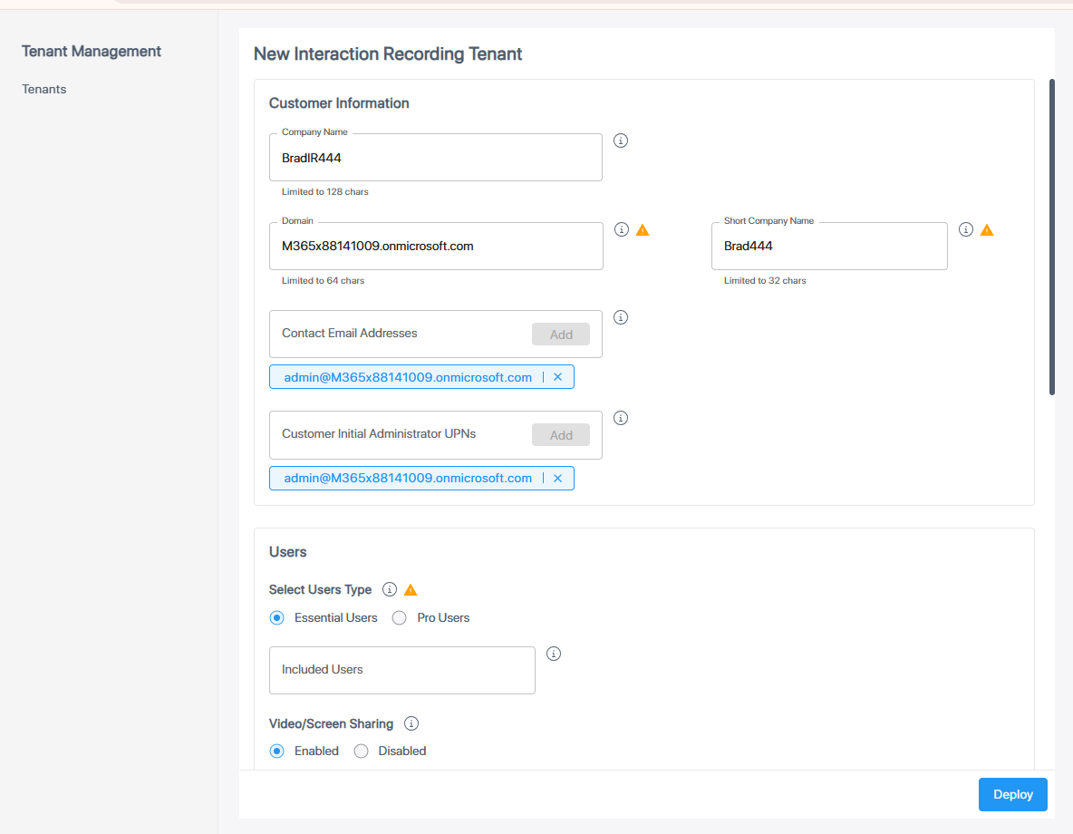 ● | In the Customers page, click Add, and then from the down-down list, choose Dedicated Interaction Recording or Interaction Recording. |