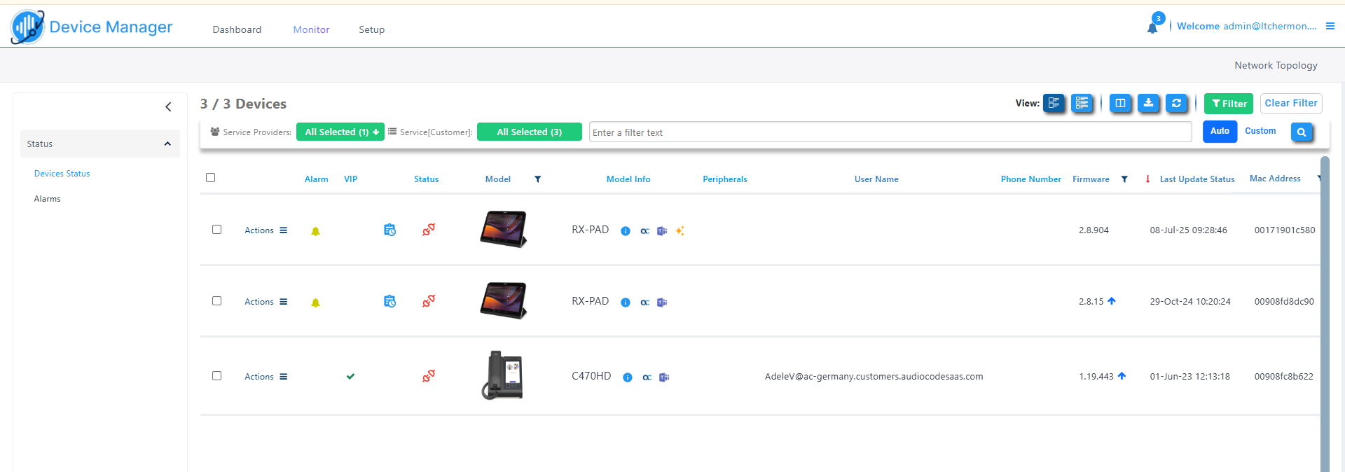 In the Services page, from the Service Actions drop-down menu, choose Device ManagerOpen Management Page.