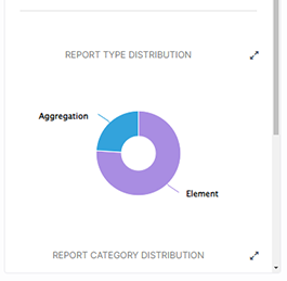 The lower section of the pane shows a pie chart depicting how report types (Trend, Aggregation and Element) are distributed. Optionally, magnify the chart by clicking ; a full- screen view of the pie chart is then displayed; in the full-screen view, click to return to the pie chart in Summary Pane view. Hover your mouse over a segment of the pie. Use the preceding figure as reference; a popup indicates report type, # of reports of this type and the % of reports of this type. You can immediately determine for example for which report type most reports were run and for which least. |