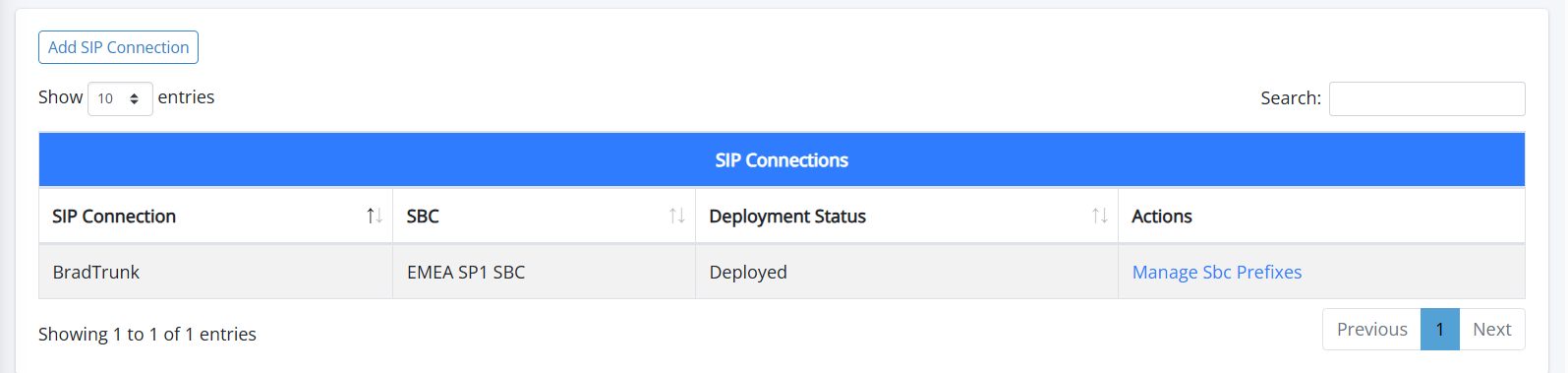 SIP Connection management lets you manage the SIP Connection between your service and the SBC device including: