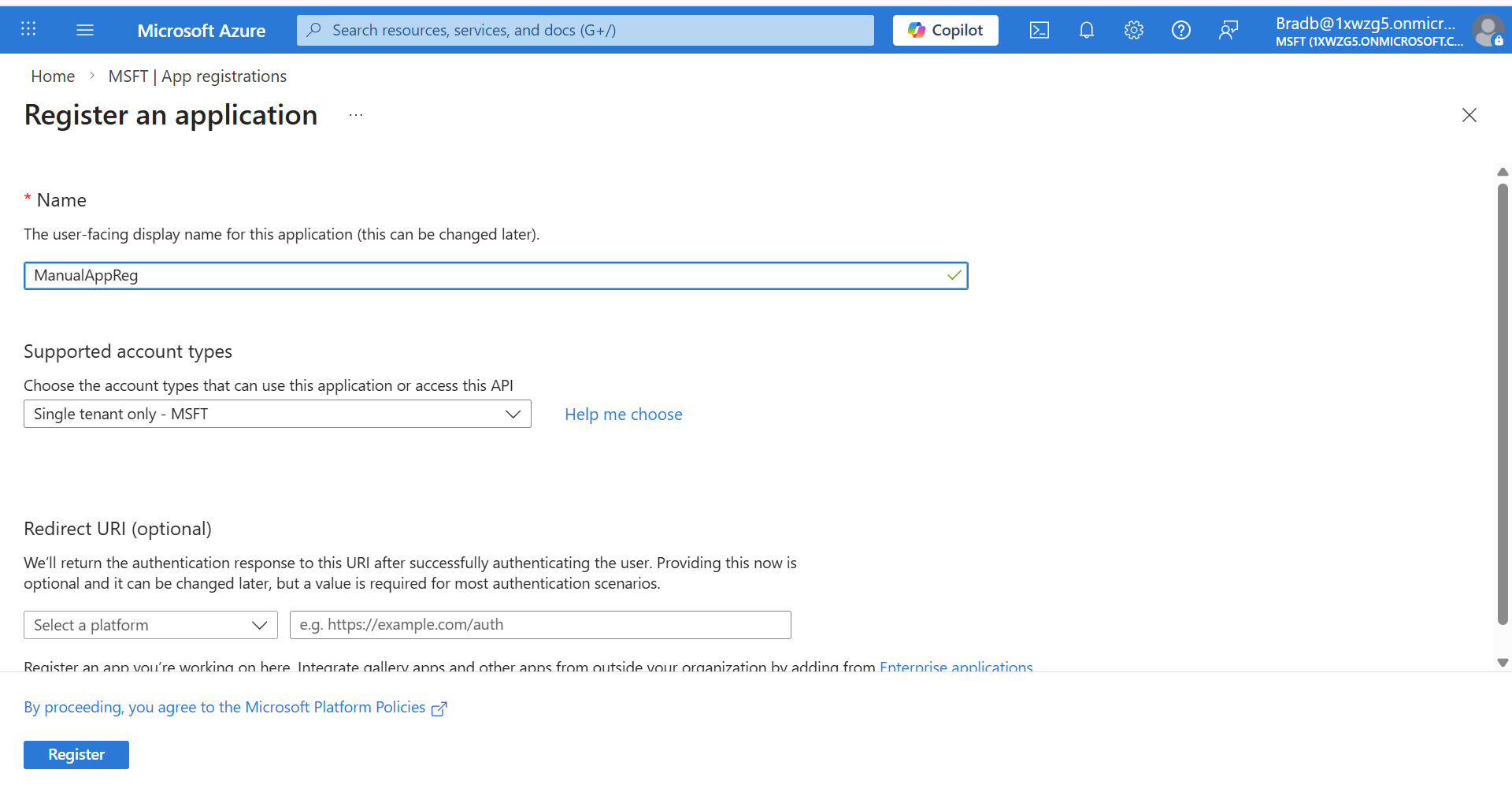 Create App Registration Manually