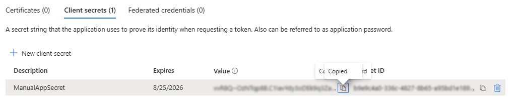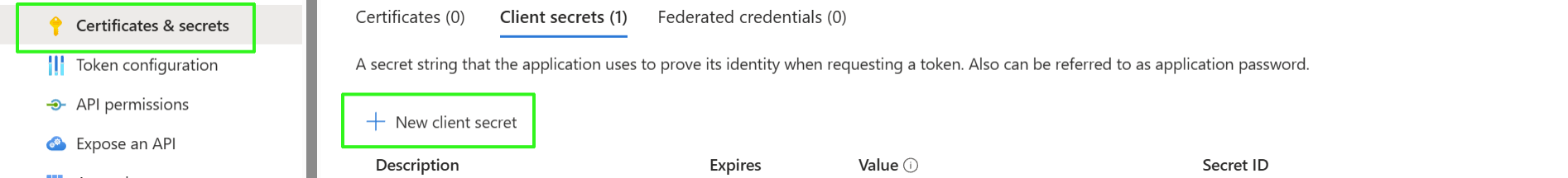 Click New client secret to add a new client secret. |
