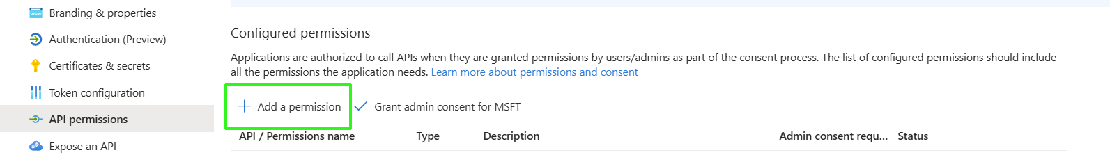 In the Navigation pane, select Manage > API permissions. |
