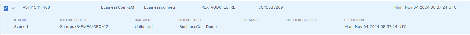 CAC Values: Configure CAC value for Contact Center and Service Numbers which limits the number of concurrent call sessions for the number (not relevant for the 'User' number type). |