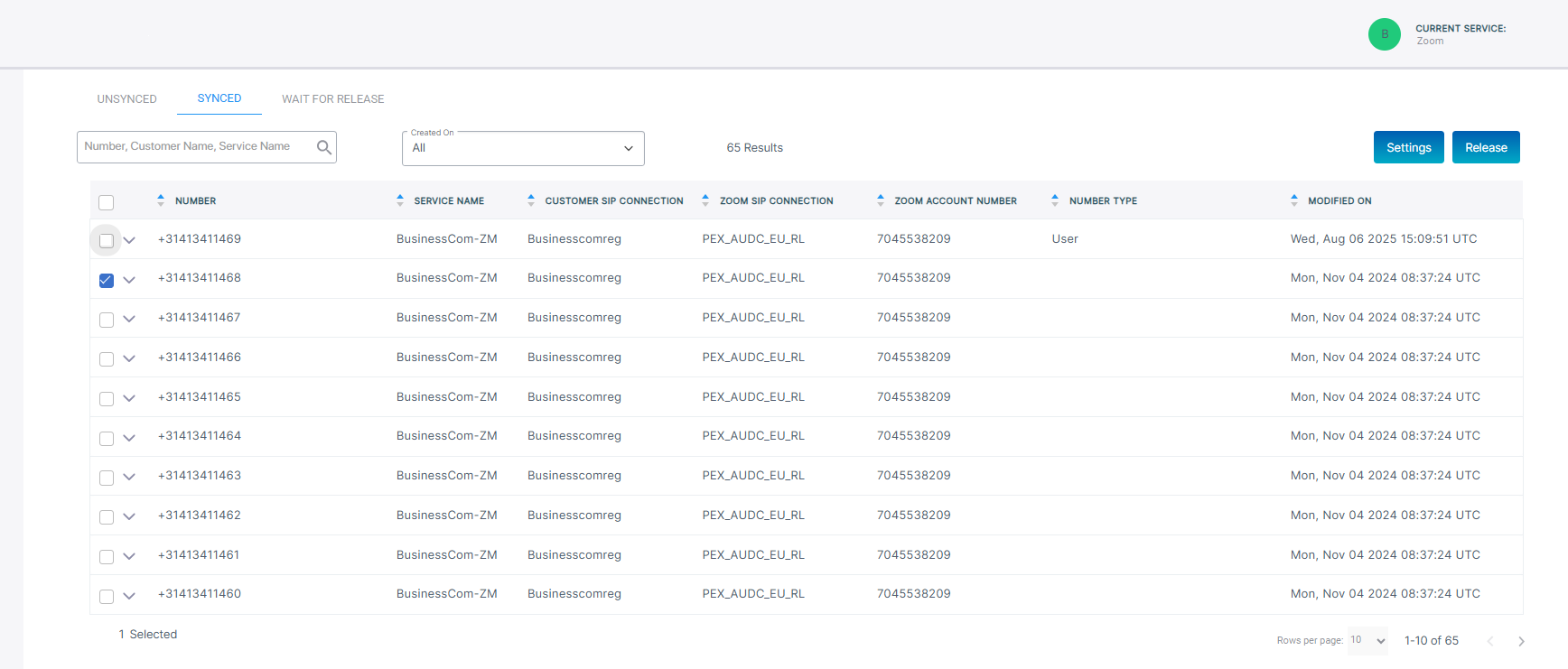 Configuring Zoom Peering Number Settings