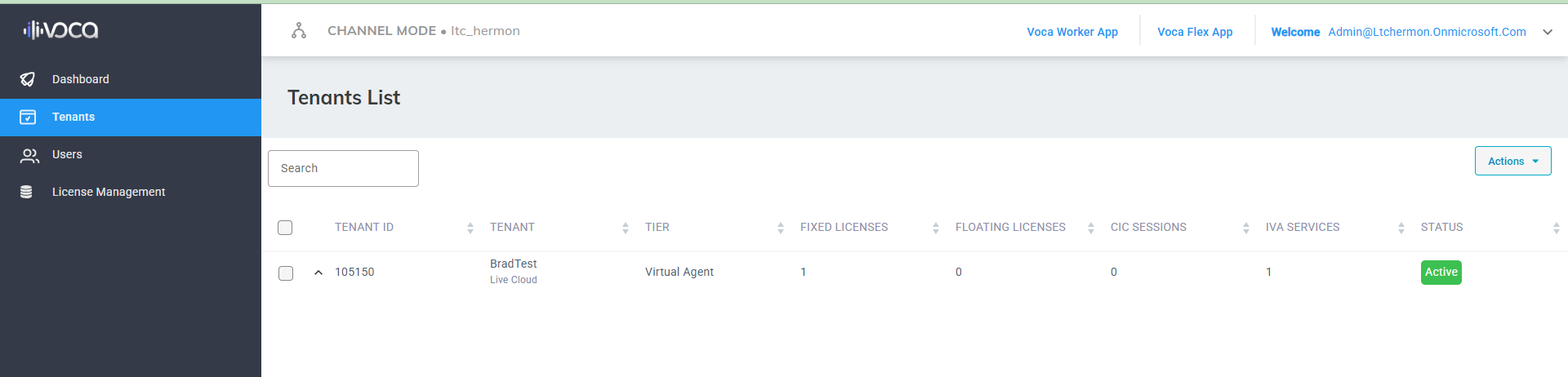 The Tenants list lets you manage the list of Voca CIC tenants deployed under your channel.