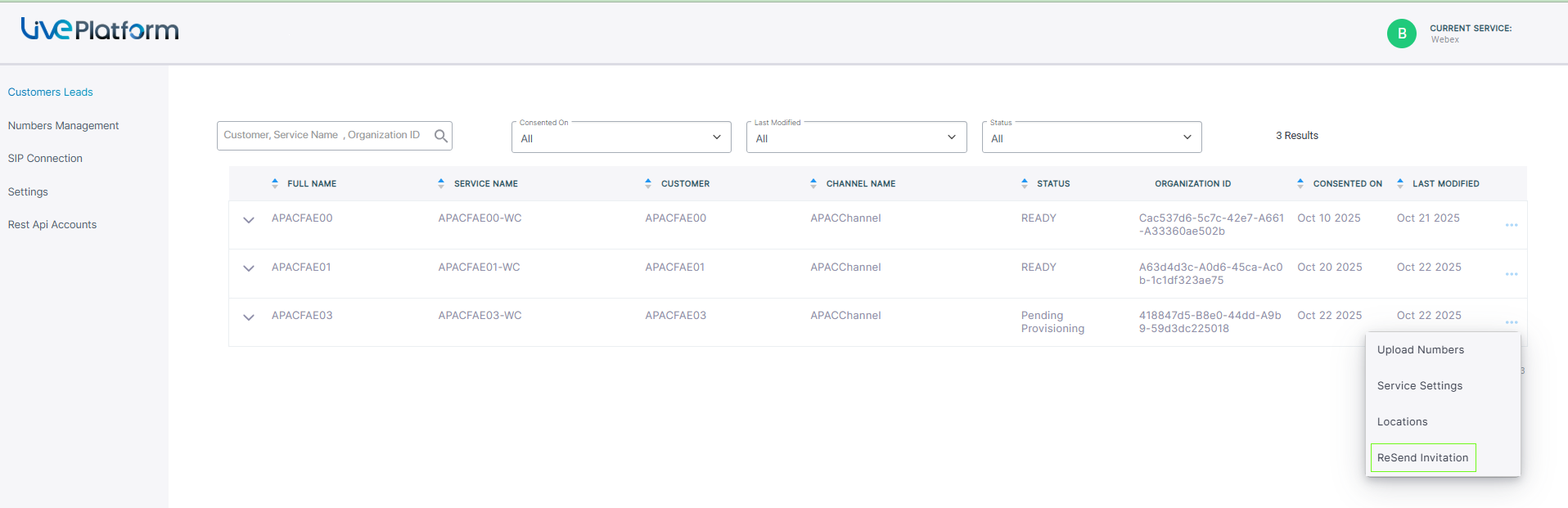 For Webex Cloud Connect Integrated mode, you can regenerate the invitation for consent to a customer.