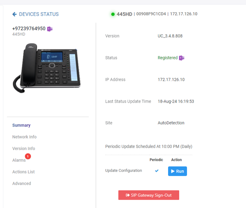 | 6. | [Optionally] Sign out of the SIP Gateway: in the Devices Status page, click the phone’s image. |