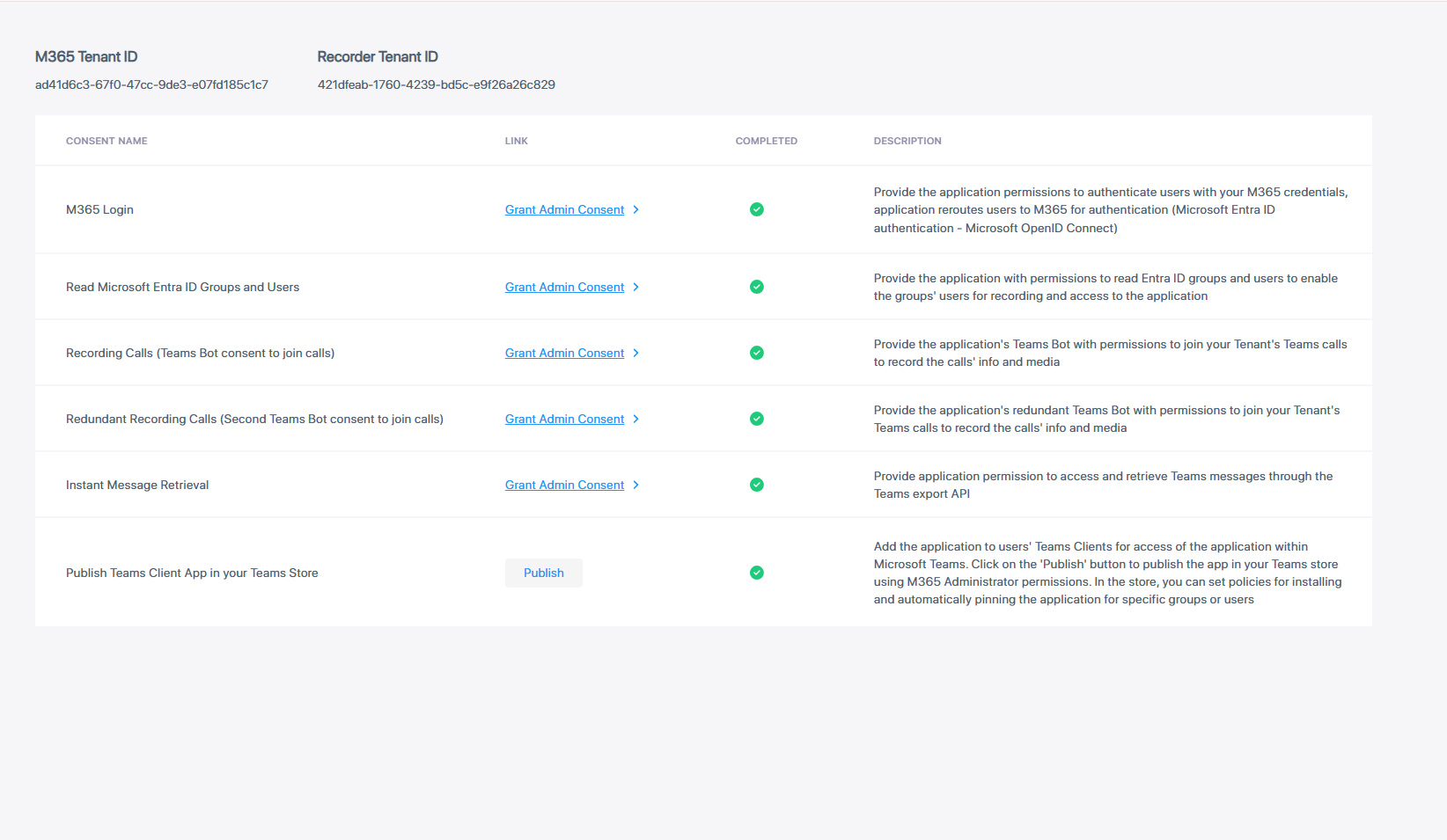 ■ | Step 1: Establishes consents to secure connection with the customer's M365 platform for all managed Azure and Interaction Insights services. |
