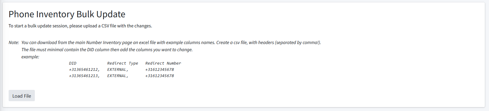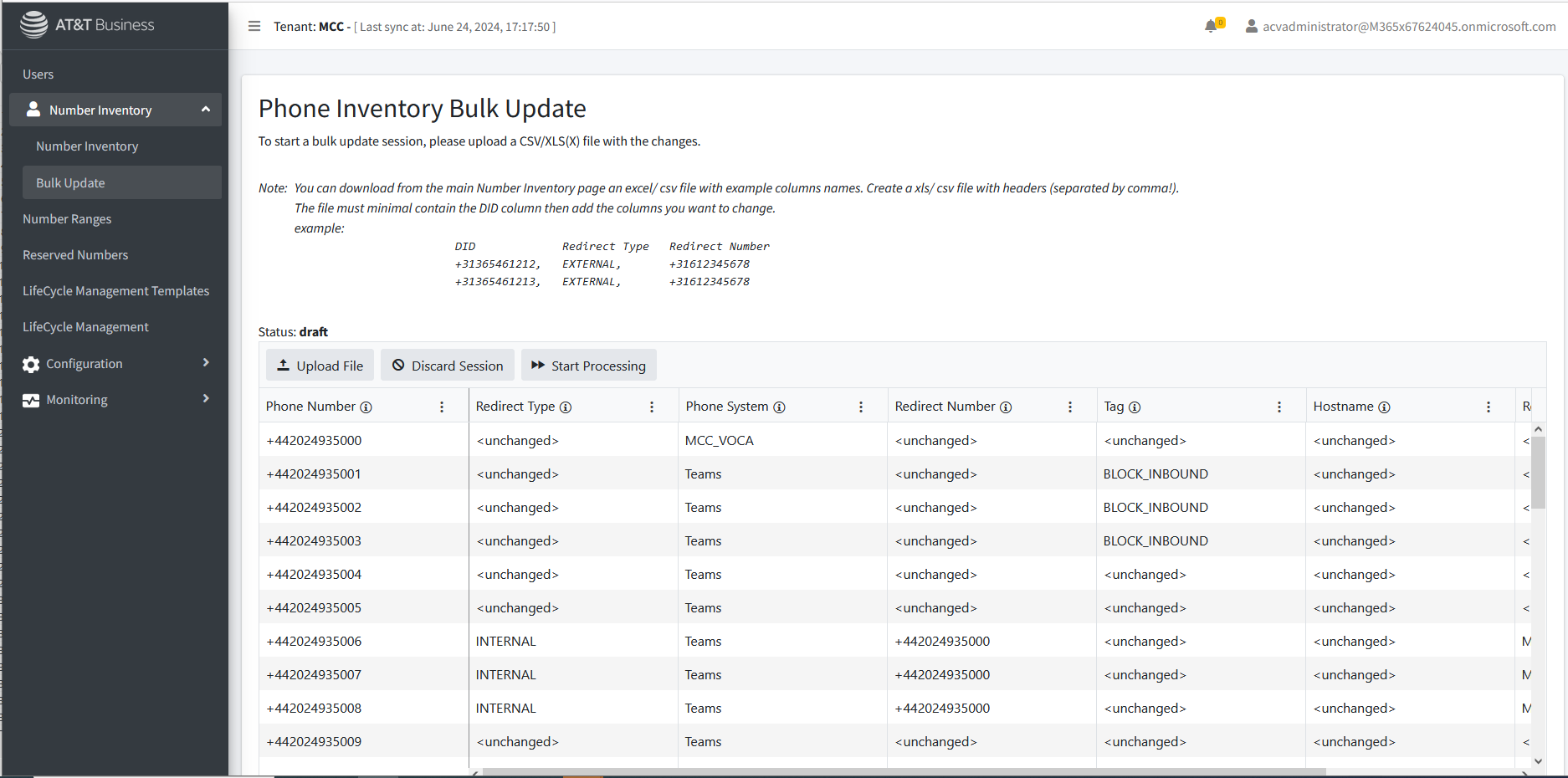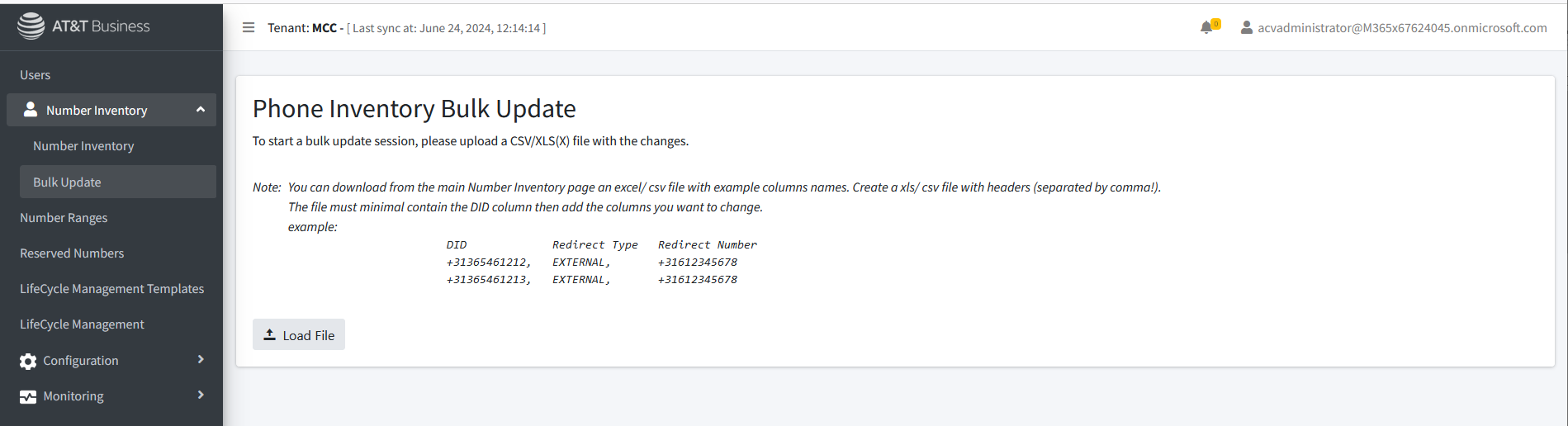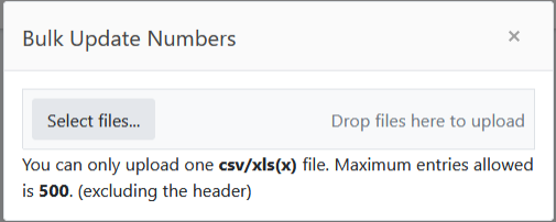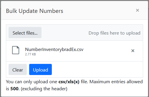 | 1. | In the Navigation pane, select Number Inventory > Bulk Update. |