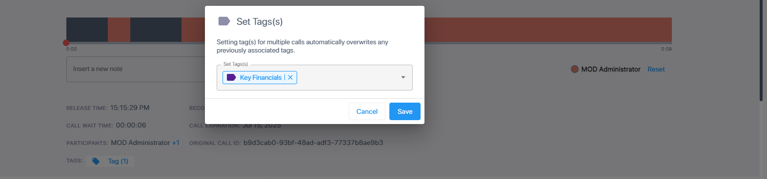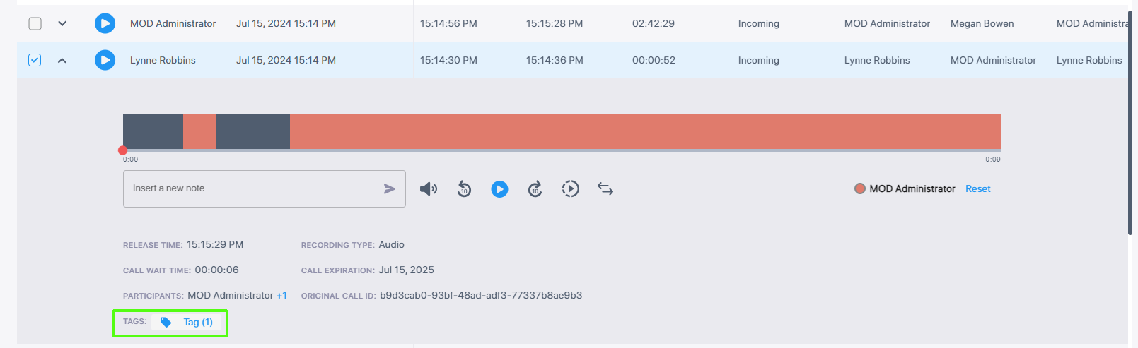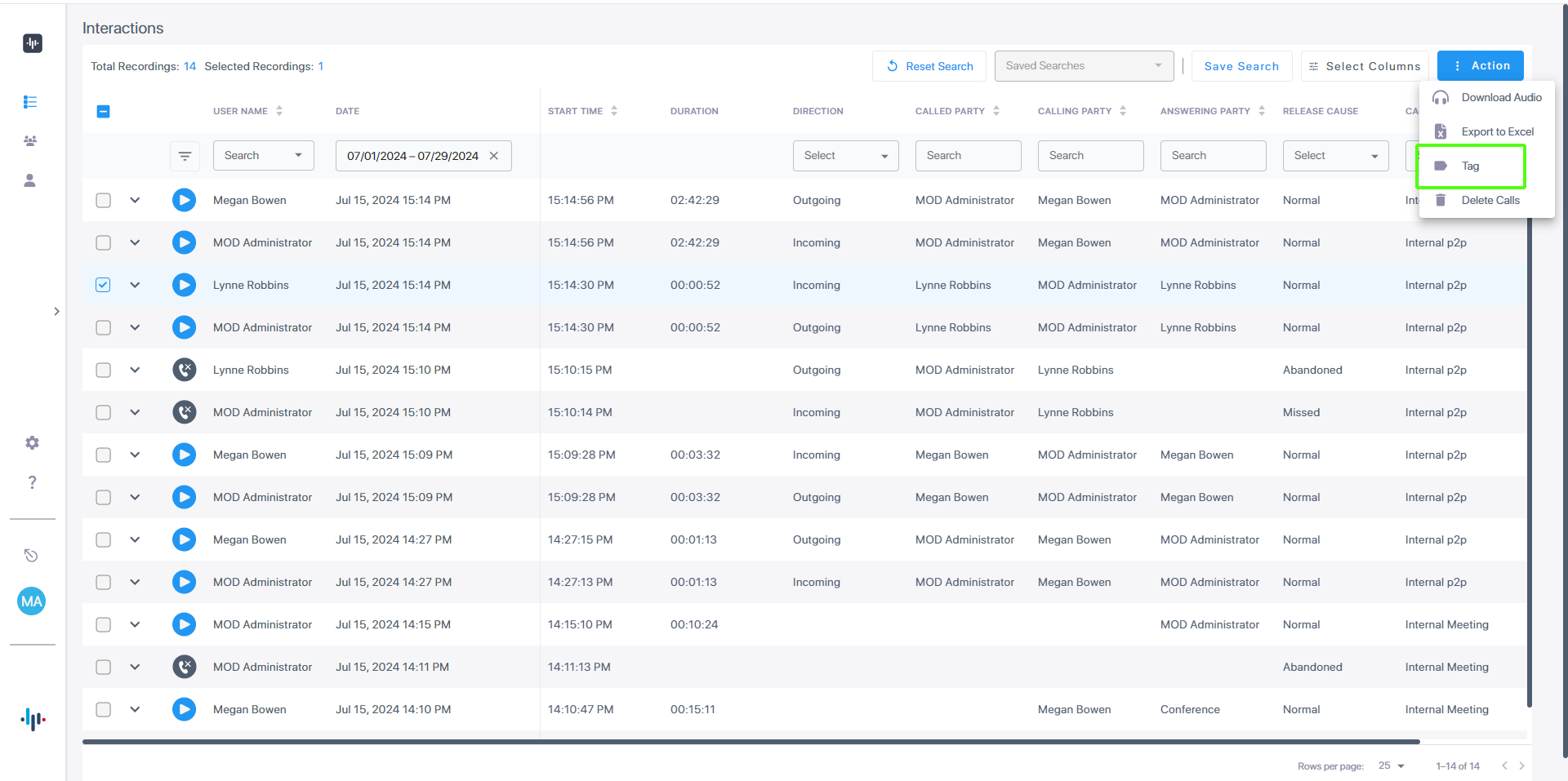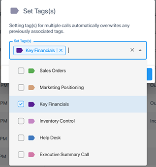 You can assign tags to Interactions, where the tag serves as a reminder or keyword that can be later used to retrieve the call details and for segmentation in interaction analysis.