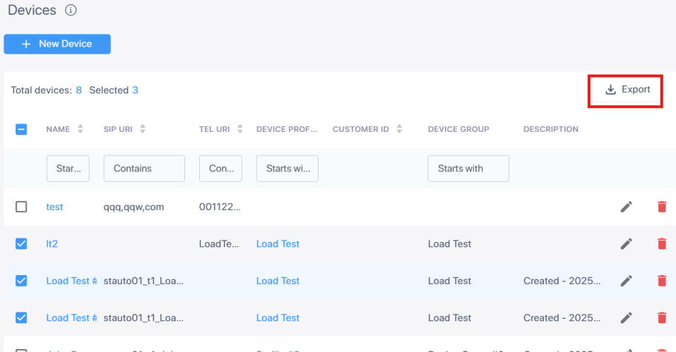 | 2. | Select the devices to export, then click Export. |