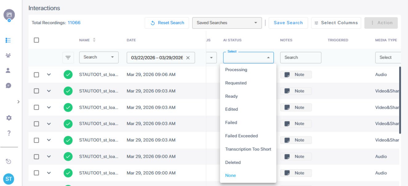 | 2. | From the AI Status drop-down, select an AI status, or select None for calls without status. |