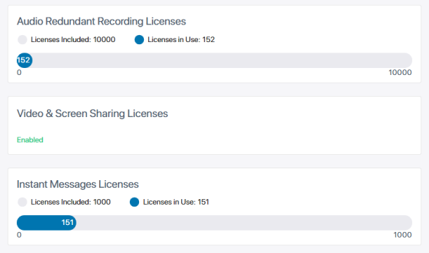 | ● | The Instant Messages license appears only if enabled for the tenant (in the Tenant Management portal). |