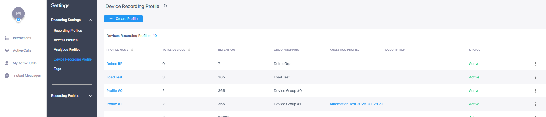 Device Recording Profiles