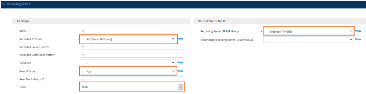'Recorded IP Group' defines the SBC leg interfacing with the IP Group that you want to record |