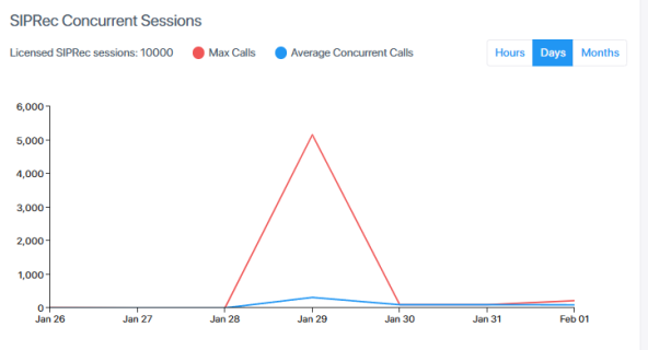 The system calculates the current and/or maximum number of simultaneous SIP sessions and displays it against the licensed number of sessions. This helps administrators determine and adjust the requested number of licensed sessions.