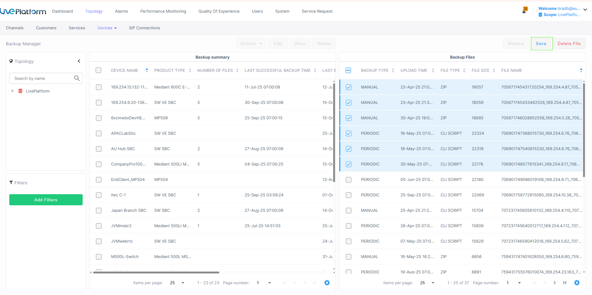 Multiple Backup files can be downloaded from the Backup Manager including both Manual and Periodic Backup file types.