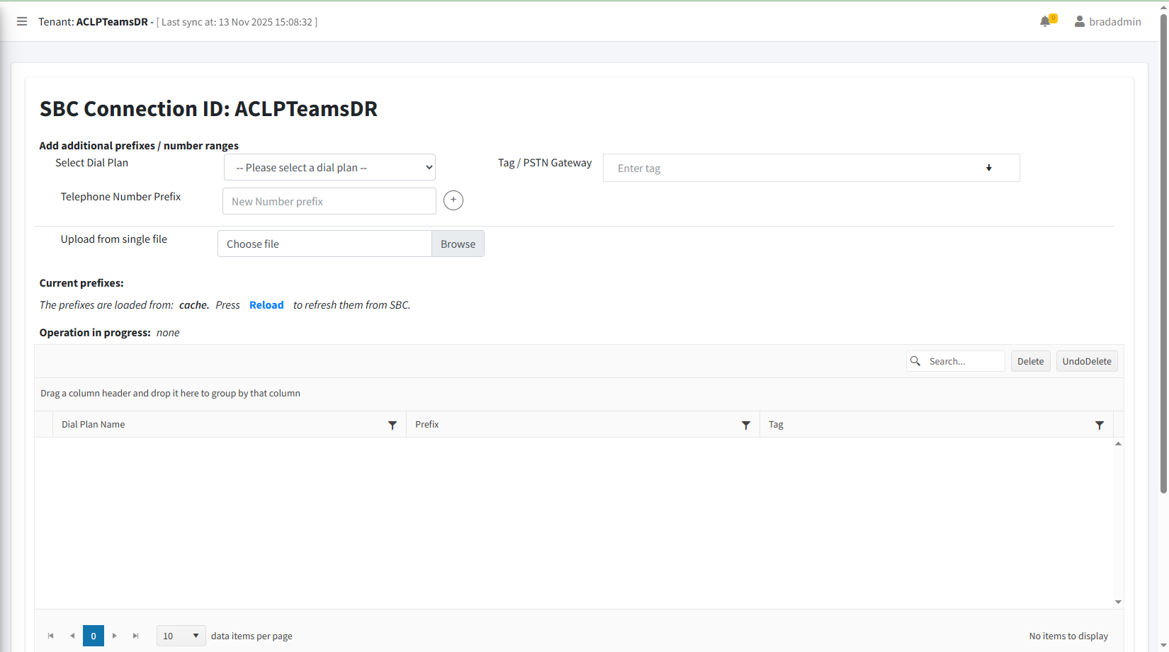 Manage SBC Prefixes Page
