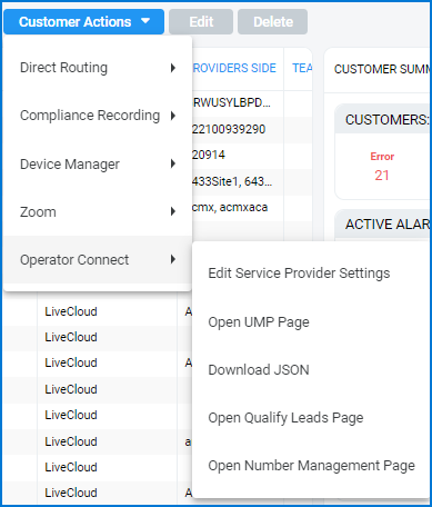 Open Number Management Page: Opens the Number Management page for managing phone number assignments. |