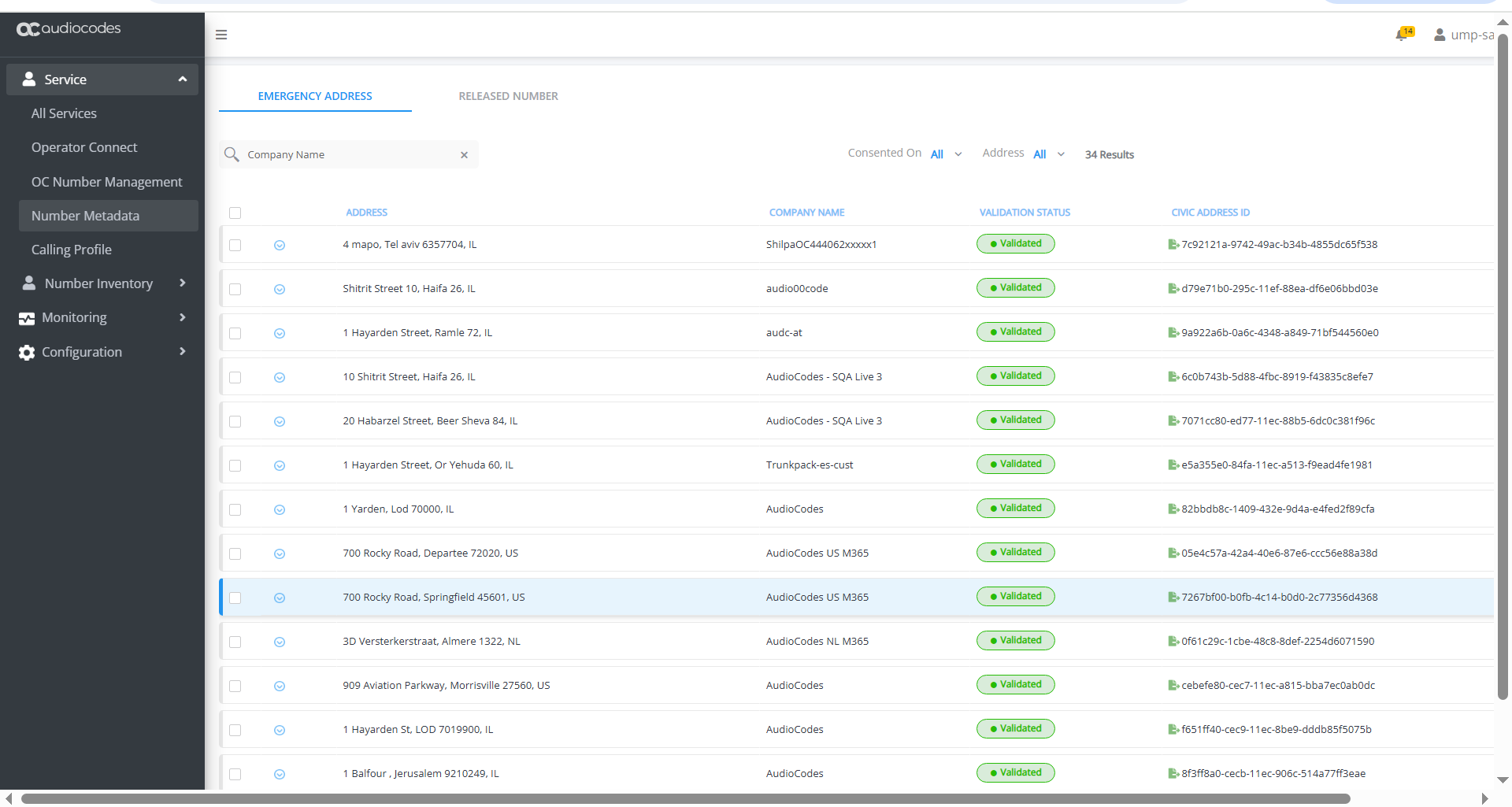 A new page "Number Metadata" has been added including a list of emergency addresses and released numbers.