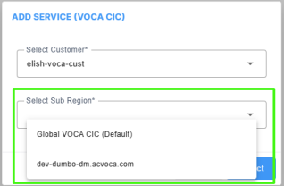 Live Platform now supports the management of multiple Voca CIC devices within a single deployment where each device represents a Voca CIC sub-region. During the Onboarding of the service, you can select the required sub-region according to the list provisioned by AudioCodes Professional Services. Full operation of the service requires the configuration of the appropriate Voca CIC license.
