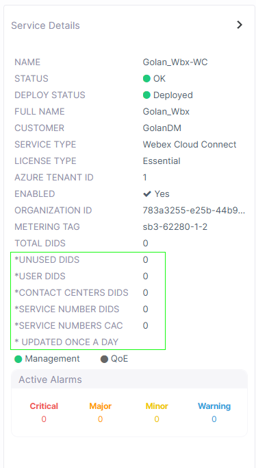 | ■ | Service Number DIDs: The total number of DIDs loaded to customer tenant of number type 'Service' for service numbers such for applications such as Fax IVR and Emergency calling. |
