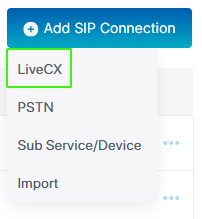 | 2. | From the Add SIP Connection drop-down, choose LiveCX. |