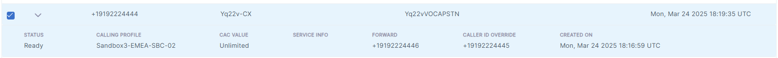 The Calling functionality assigned to the number: Contact Center (this is the only valid value for the CX service type).