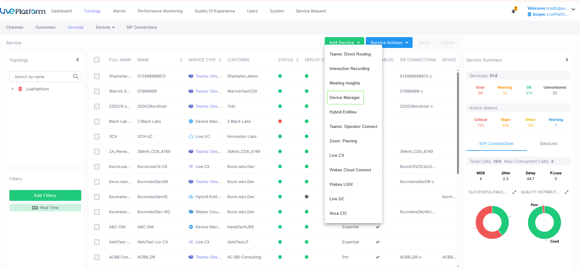 | 1. | In the Services page, from the Add Service drop-down, select Device Manager. |