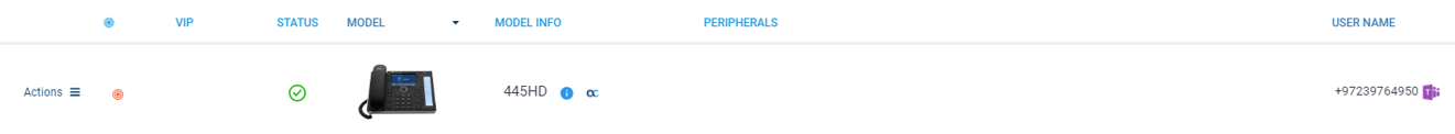 | 1. | In the Devices Status page, click Actions adjacent to the phone and then select Show Info from the popup menu. (Alternatively, in the Devices Status page click the phone’s image). |