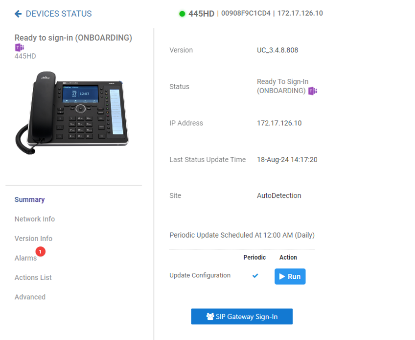 After connecting a phone to SIP Gateway, sign in to it. The instructions here show how to sign in remotely using Device Manager. Once you sign in for the first time, you can start to remotely configure the device using the Device Manager.