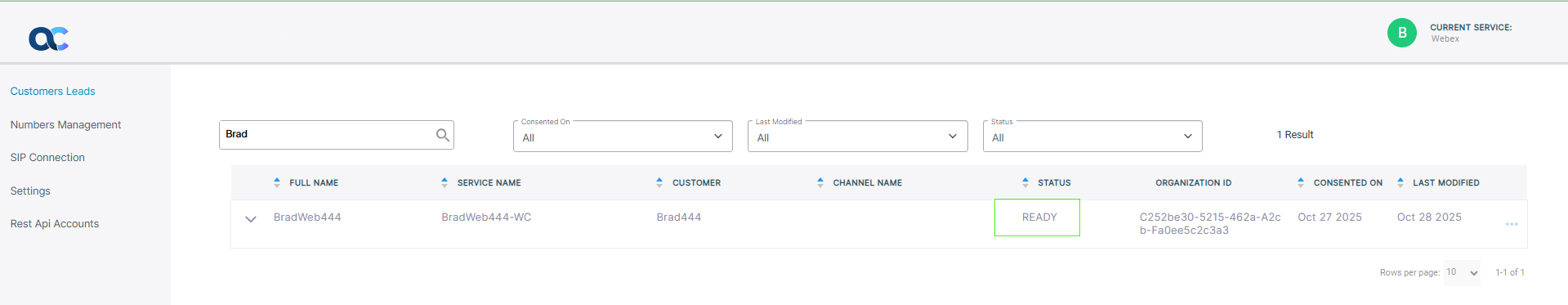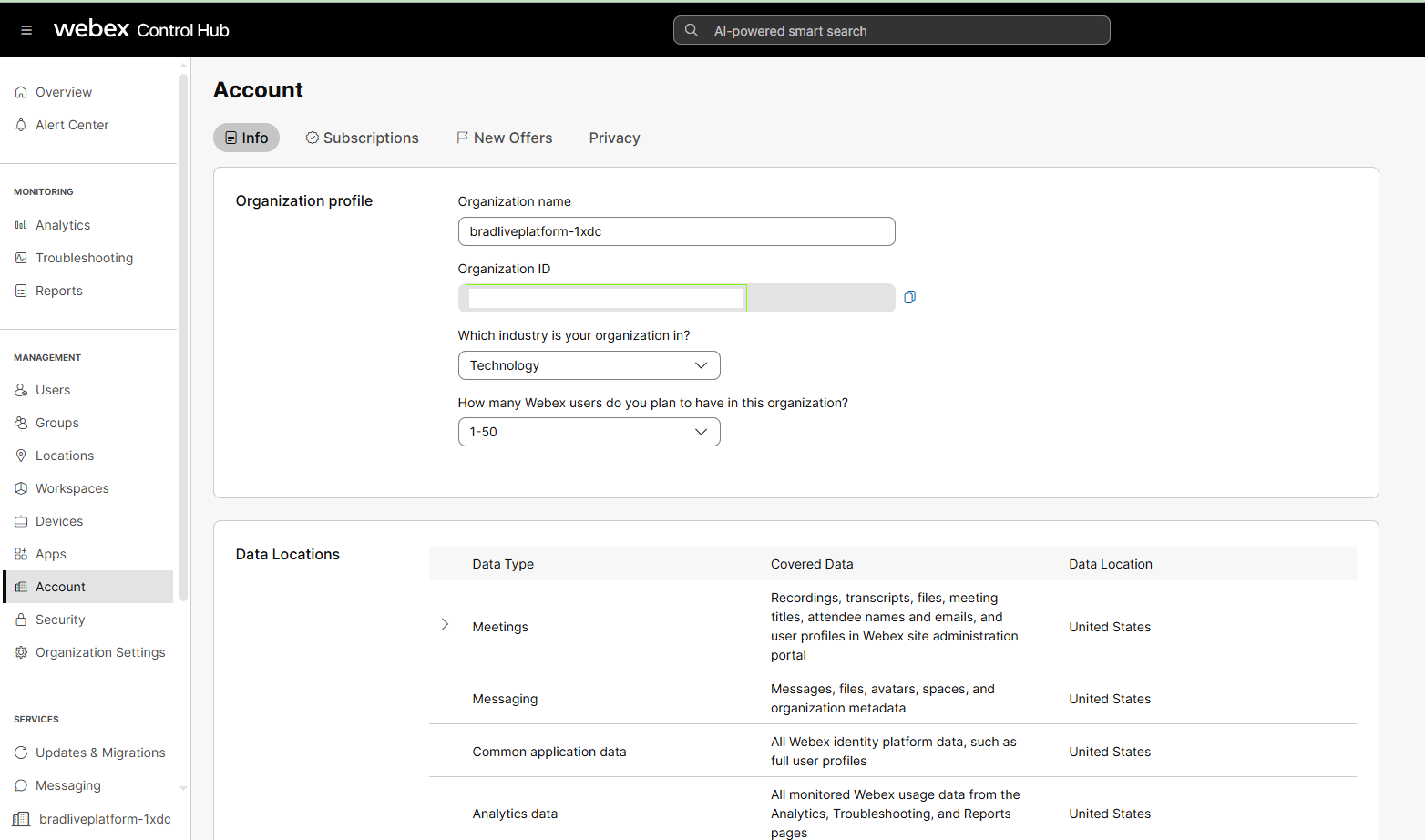 Webex Cloud Connect Organization ID