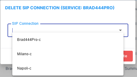 | 2. | From the drop-down list, choose the SIP Connection that you wish to delete and then click Delete. |