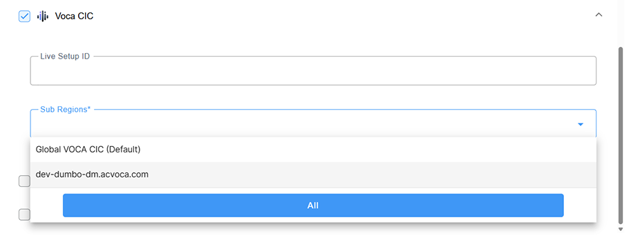 | ● | For Voca CIC, from the Sub Regions drop-down, choose the Voca CIC device to attach to the channel. . |