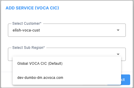 | ● | In the Customers page, from the Add Service drop-down, choose Voca CIC. |