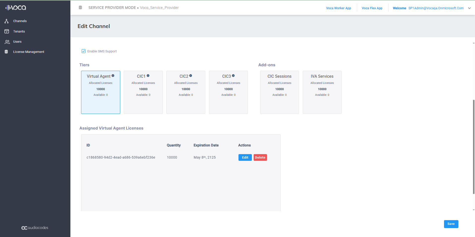 You can configure the Provider License capabilities for the managed tiers. For detailed information, see the Voca CIC Admin Guide.