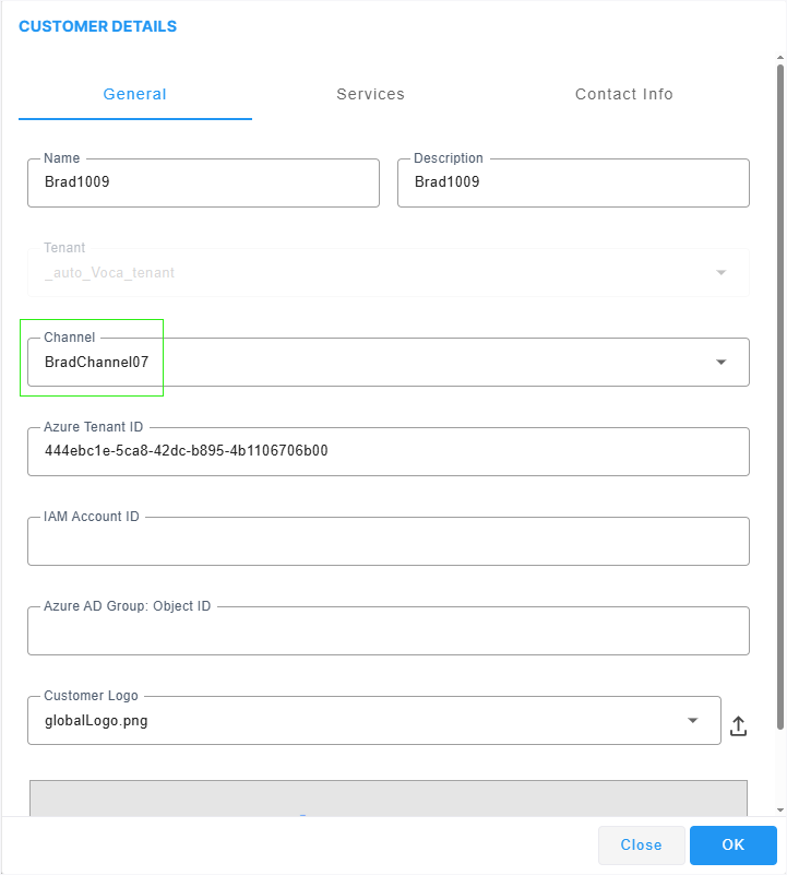 | ■ | Ensure that you have attached a channel to the customer under which you wish to add the Voca CIC service. The channel represents the Voca CIC Provider. The channel should be enabled for the Voca CIC service, and attached to a Service Provider Voca tenant that is also enabled for the Voca CIC service. |